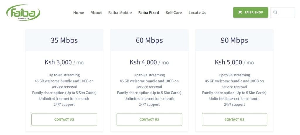| Faiba 60 Mbps | 60 Mbps | Ksh 4,000 |