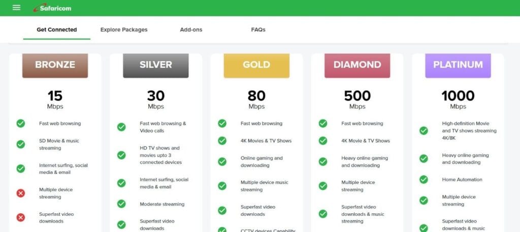 | Platinum | 1,000 Mbps | Ksh 20,000 | Kenya’s fastest residential internet option |