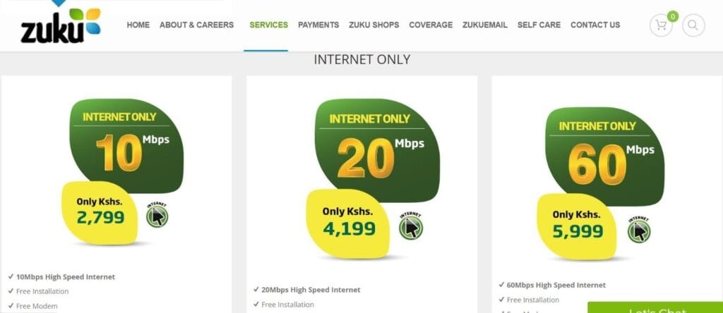 | Internet Only – J10 | 10 Mbps | Ksh 2,799 |