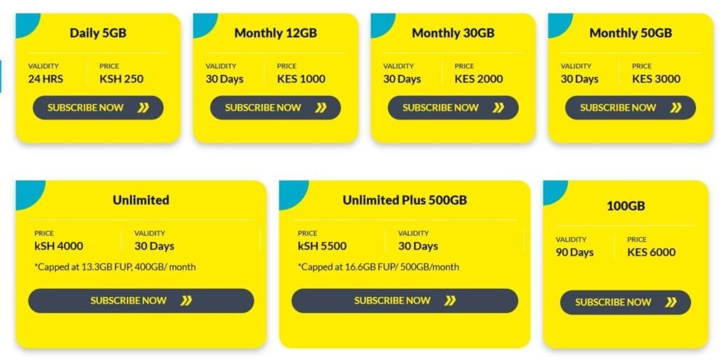 | Faiba 90 Mbps | 90 Mbps | Ksh 5,000 |