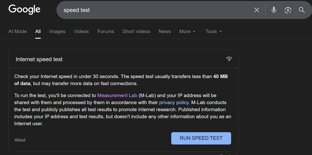 Google’s integration also ensures that the results are displayed in a clear format that is easy to understand, even for those who are not technically inclined. If you are looking for a fast, no-frills Internet Speed Test, this tool offers reliability and speed without the extra steps.