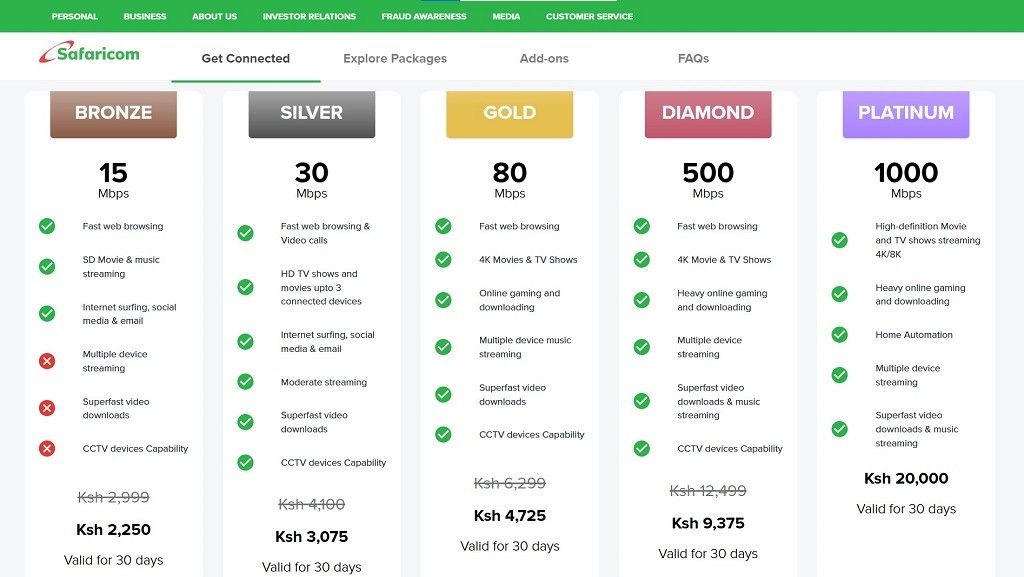 • 5 Mbps (capped) – KSh 1,575 per month or KSh 450 per week.